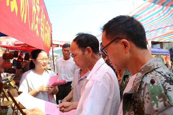 当地群众在向纪检干部了解举报方式