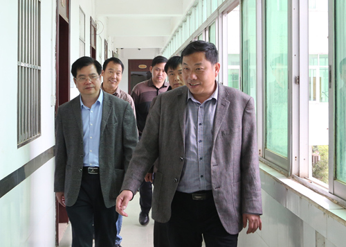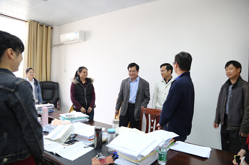 扶绥县纪委副书记唐诘汶(左一)到县水利局查岗