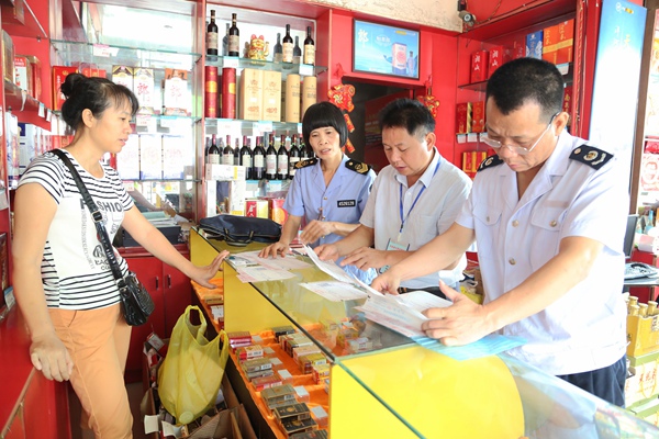 为防止“四风”和“节日病“反弹,广西壮族自治区扶绥县纪委监察局在中秋、国庆期间会同有税务部门、食药监局等相关部门组成4个巡查暗访组深入机关、各乡镇、超市、礼品店、茶庄、娱乐场所等开展明察暗访活动,重点围绕公款购买赠送月饼、婚丧喜庆、公款旅游吃喝等问题开展专项监督检查,查阅发票、实地暗拍等,对发现的违反中央八项规定精神的线索及时组织调查核实,发现一起、查处一起、通报一起。图为巡查暗访组在礼品店仔细翻阅发票、财务账等。