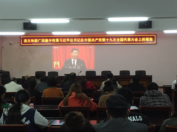 图为文体新广局组织干部集中收看十九大开幕会现场