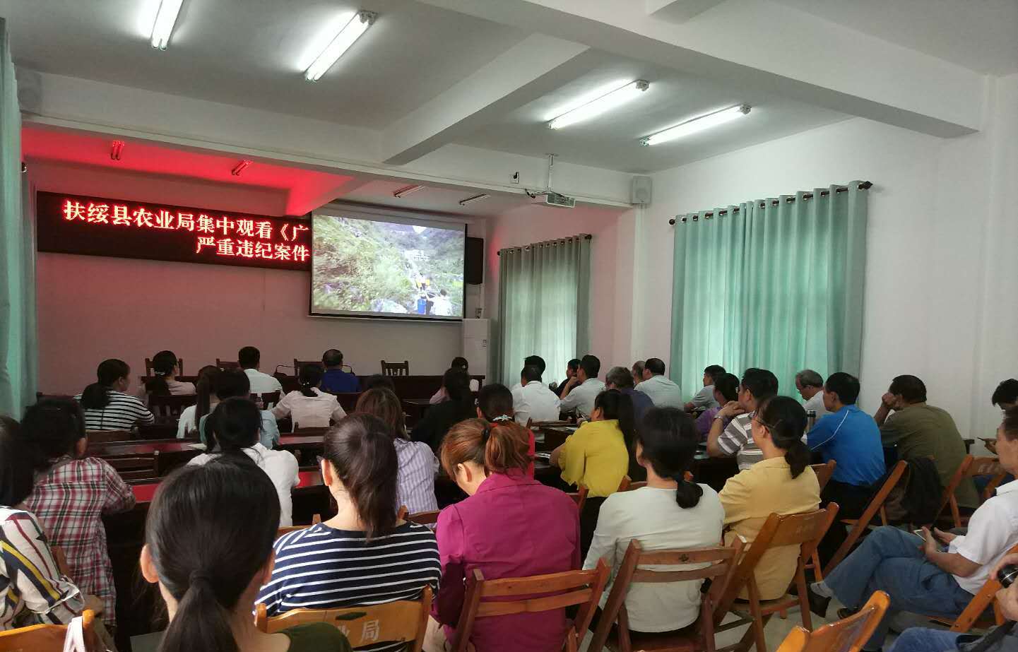 5月10日下午,县农业局组织全体党员干部集中观看了自治区纪委制作的《广西三起县级扶贫办主任严重违纪案件警示录》教育专题片。
