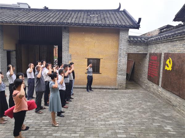 图为党员在张报故居重温入党誓词。