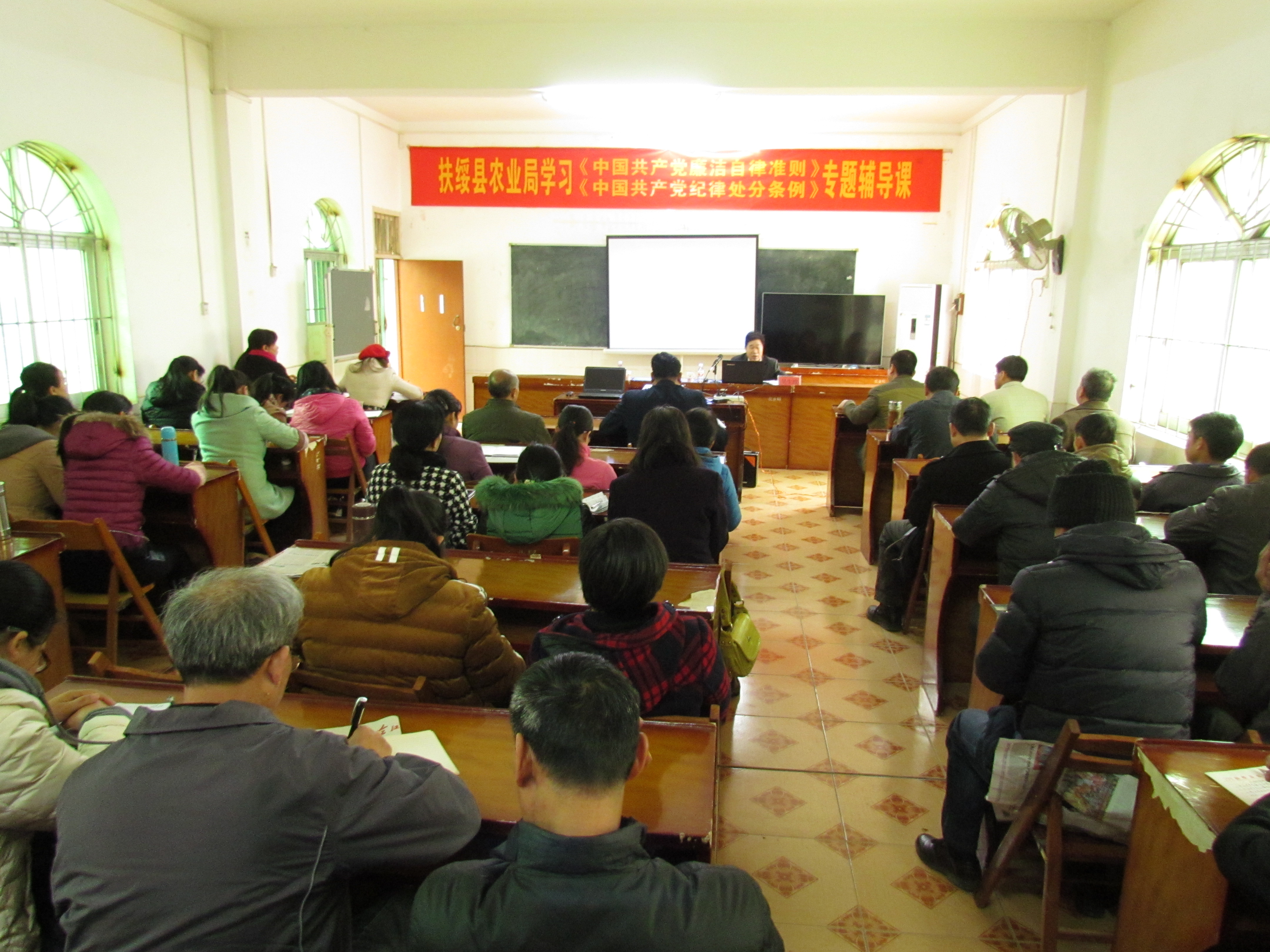 2月15日,春节收假后第二天,扶绥县农业局邀请县纪委副书记、监察局局长吴生政为全体干部职工上廉政教育专题辅导课,学习新颁布的《中国共产党廉洁自律准则》和《中国共产党纪律处分条例》。