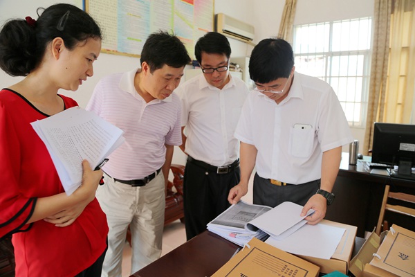 扶绥县委常委、纪委书记邓文杰(右一)到渠旧镇检查“两个责任”落实情况。左二为扶绥县纪委副书记、监察局局长吴生政