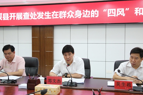 5月24日下午,扶绥县纪委召开查处发生在群众身边“四风”和腐败问题暨“春风护农”专项工作推进会。县委常委、县纪委书记邓文杰主持会议并作讲话。