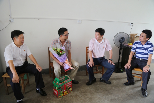 邓文杰同志(右二)看望慰问优秀教师甘雄忠(左二)