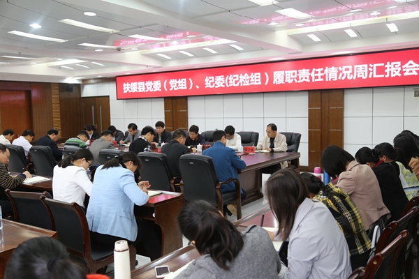 2016年12月26日上午,扶绥县纪委组织召开县直单位党委(党组)主体责任履职情况汇报会。县工商局、住建局、卫计局、教育局四个单位党组书记向县纪委常委会汇报了2016年度党组主体责任和党组书记“第一责任”的履职情况。