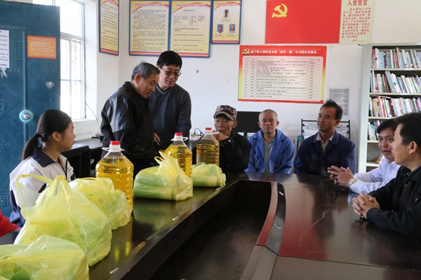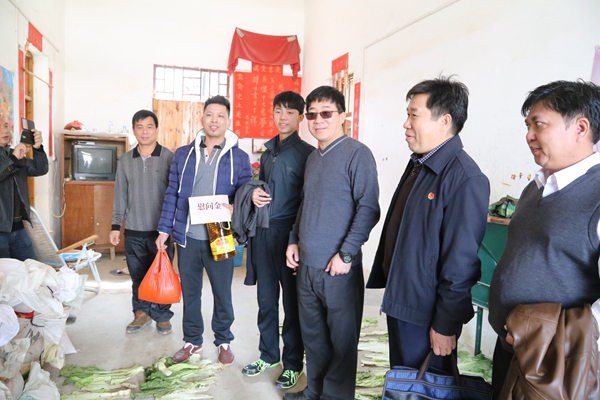 县委常委、纪委书记邓文杰一行在上洞村了解贫困户的生活困难和过年物质准备情况