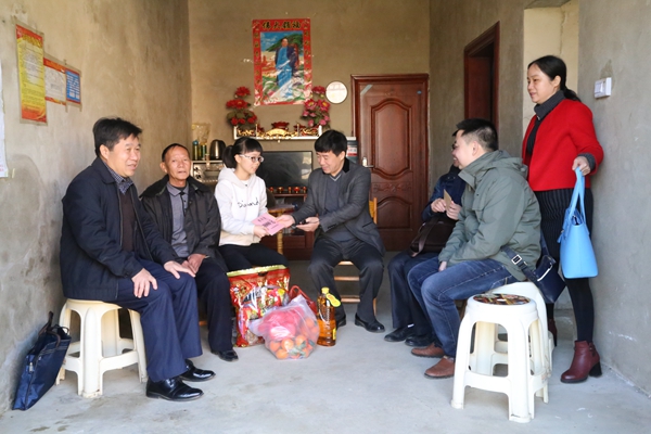 “太感谢政府的关心了,有了这些慰问金,我能更安心地读书了!”拿着礼品和慰问金的扶绥中学高二学生黄跃花感动地说。1月22日上午,县委常委、纪委书记邓文杰,监察局局长吴生政一行先后来到了渠黎镇蕾陇村、新宁镇上洞村,走访了45户困难学生扶助对象、精准扶贫困难户。