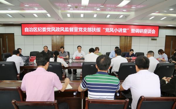 2017年4月14日,在自治区纪委副书记何敏的带领下,自治区纪委党风政风监督室党支部一行12人到扶绥开展基层党风廉政建设调研活动。通过开展“党风支部基层行”和“党风小讲坛”系列活动,了解基层党风廉政建设特别是中央八项规定精神“回头看”工作及扶贫领域监督执纪问责工作开展情况。