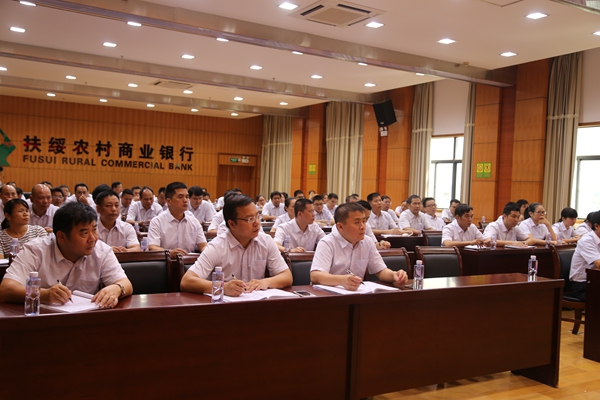 扶绥农商行的干部职工在认真聆听廉政警示教育课