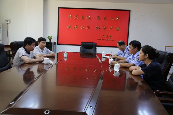 图为县委常委、纪委书记邓文杰(左一)与县公安局主要领导研究讨论派驻改革相关事项