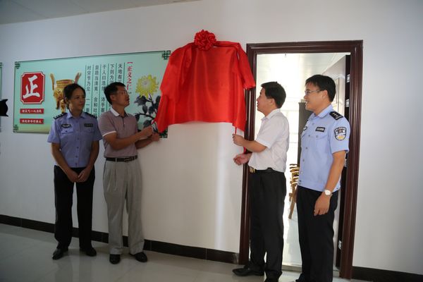 图为县委常委、纪委书记邓文杰(右二)与县委常委、组织部长冯精敏(左二)为派驻县公安局纪检组揭牌