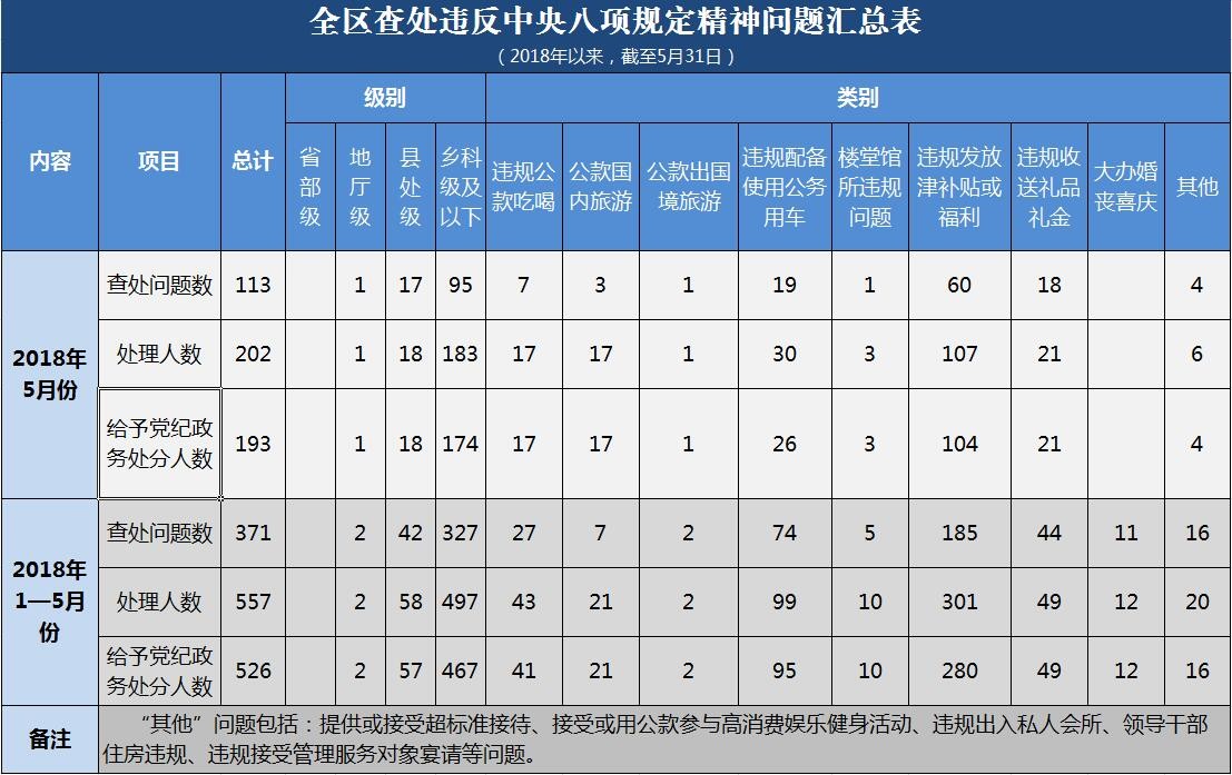 2018年1-5月全区查处违反中央八项规定精神问题371起