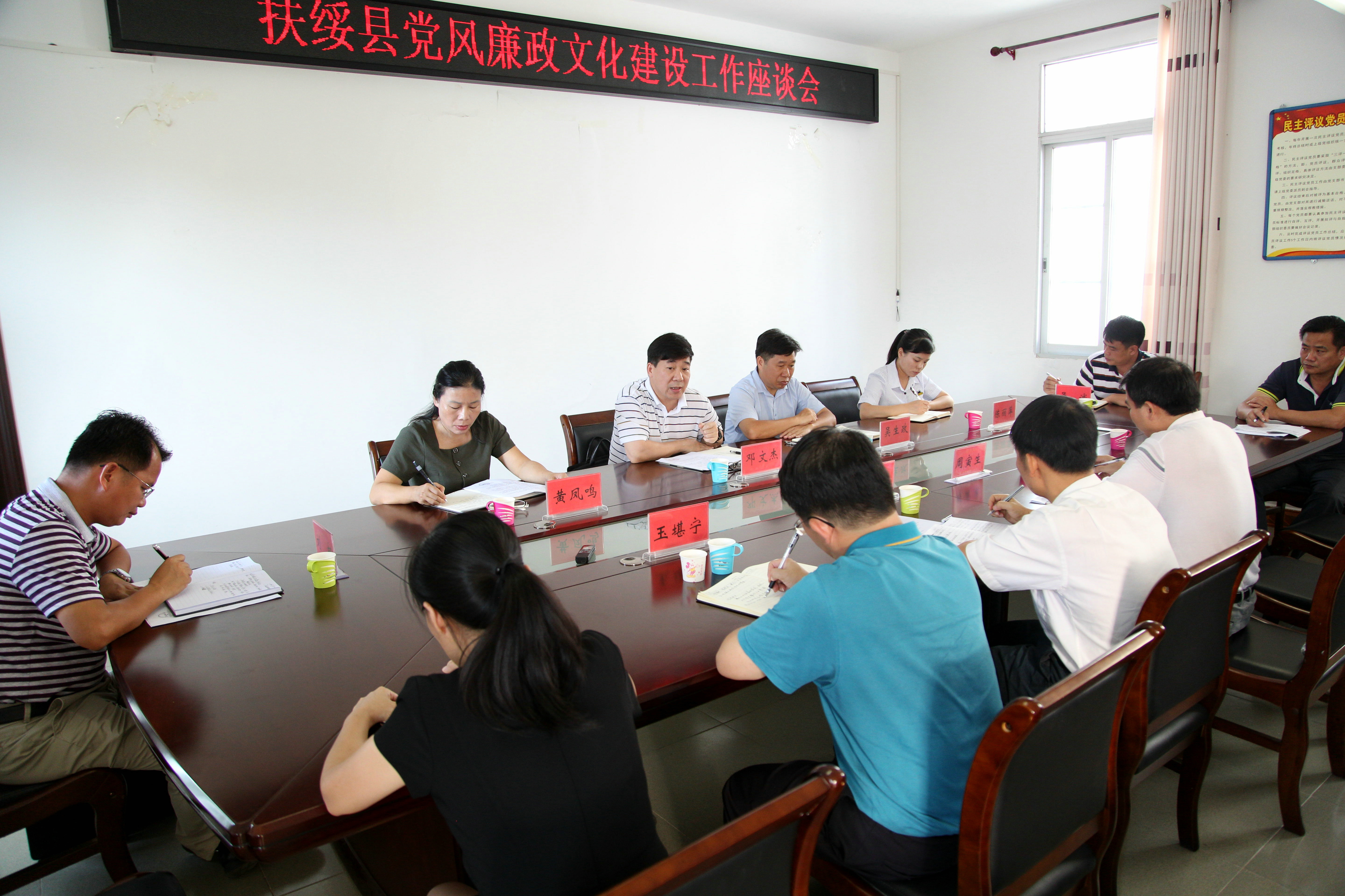 7月17日下午,扶绥县纪委组织召开该县党风廉政文化建设工作座谈会,县委常委、纪委书记、监委主任邓文杰主持会议, 县纪委分管宣传教育的领导、县文体新广局班子成员, 县委宣传部,县文化馆、非遗中心领导及演员代表,部分乡镇、县直单位各一名主要领导及部分驻贫困村第一书记参加会议。