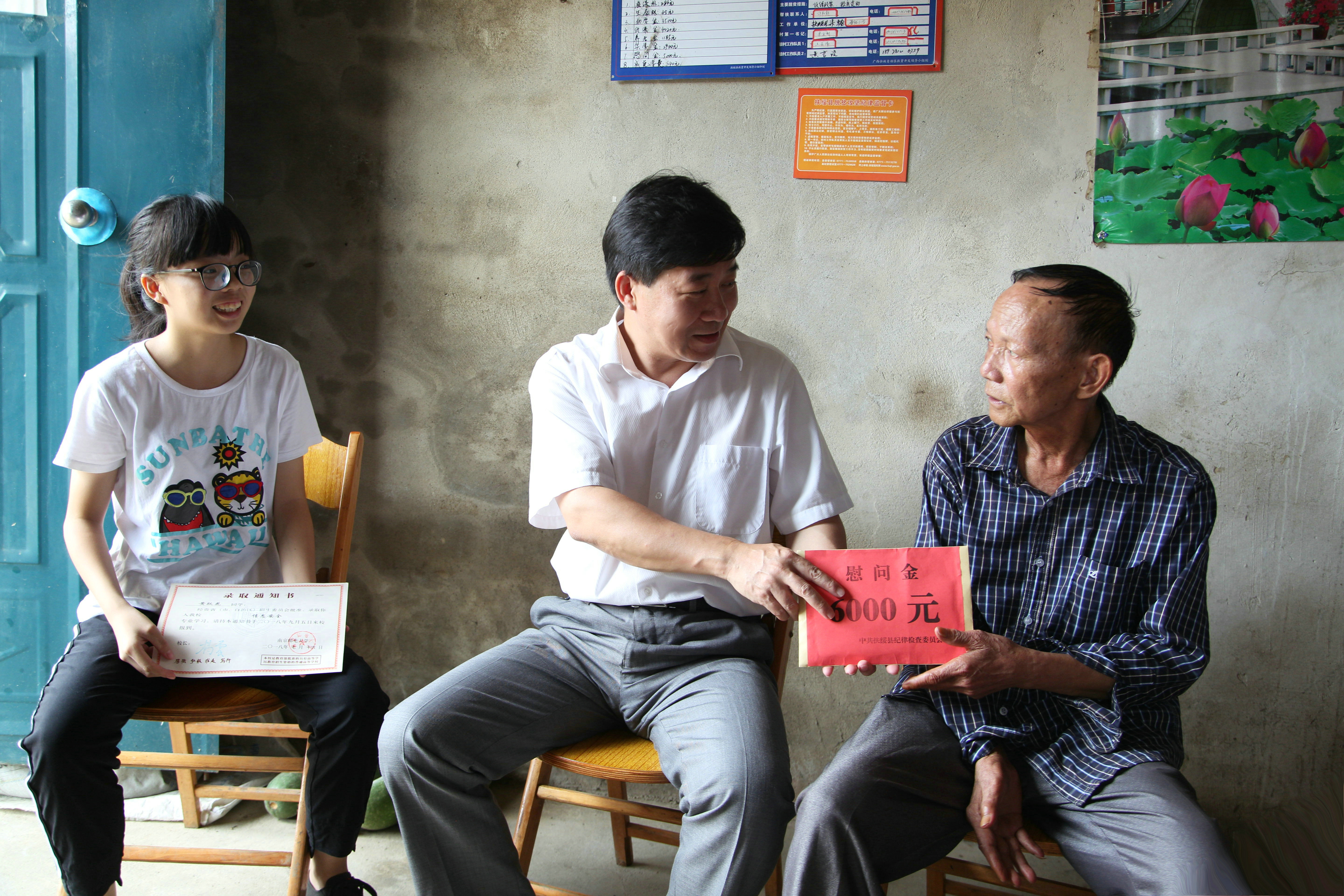 带着对优秀学生的祝贺,带着对贫困学子的关爱。7月31日,扶绥县委常委、纪委书记、监委主任邓文杰来到渠黎镇贫困户黄华坤家中,慰问了今年以优异成绩考上南京邮电大学的寒门学子黄跃花,并为她送去了助学金6000元,勉励她在新的起点上再接再厉、奋发图强、成长成才。