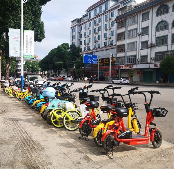 图为经过归整,排放整齐的电动车