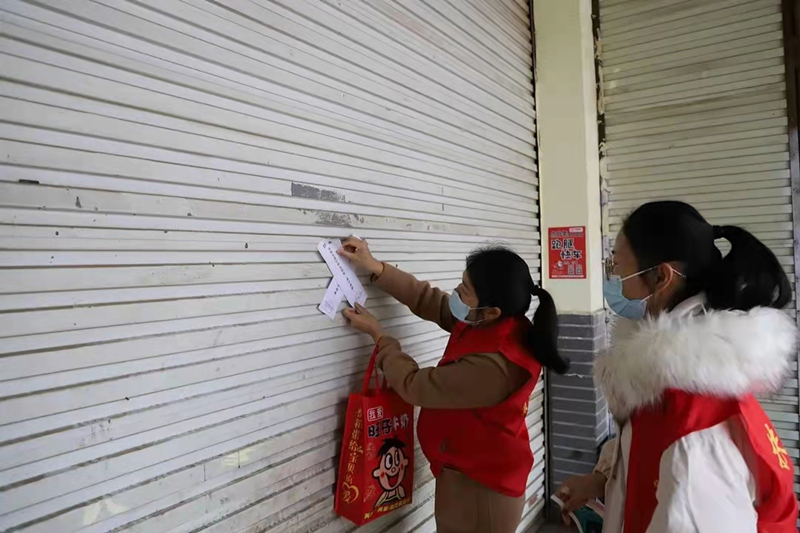 新宁镇防疫监督检查工作组对开放街区商店进行检查,要求商家严格执行测温、亮码、戴口罩“三环节”