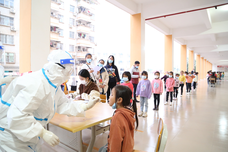 县纪委监委督查组到县实验学校监督检查学生核酸采样工作进展情况。