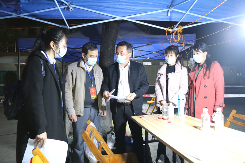 县纪委监委督查组到县文化广场核酸检测采样点围绕点位设置是否合理、检测人员和设备是否到位、