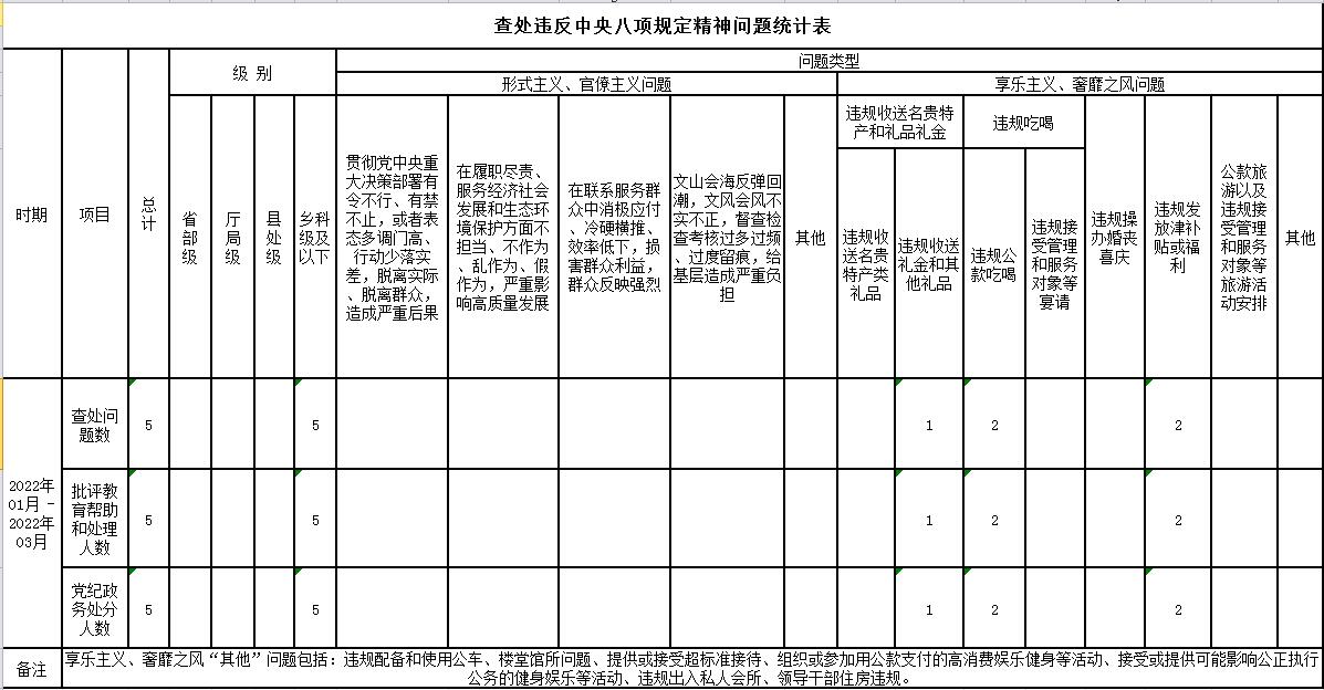 2022年1-3月扶绥查处违反中央八项规定精神问题5起