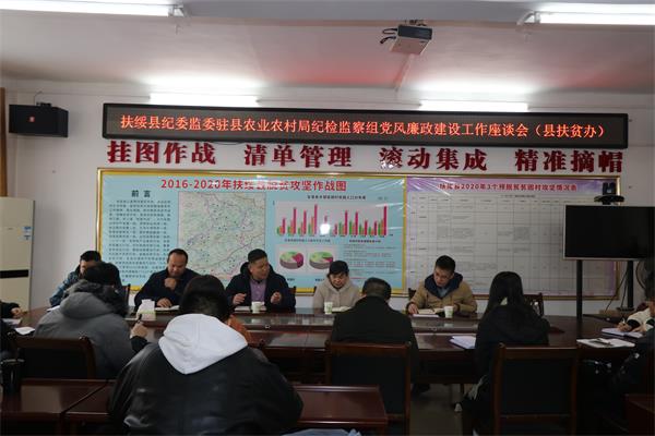 近日,扶绥县纪委监委驻县农业农村局纪检监察组在县扶贫办召开党风廉政建设座谈会,了解县扶贫办党组及其领导班子成员2020年党风廉政建设工作情况,征求该办对派驻纪检监察组2021年的工作意见和建议。督促县扶贫办党组织主要负责人严格落实全面从严治党主体责任、领导班子成员认真落实“一岗双责”,加强对廉政风险的防范工作,特别是加强对扶贫项目资金监管。该办全体班子成员和各股室负责人参加了会议。