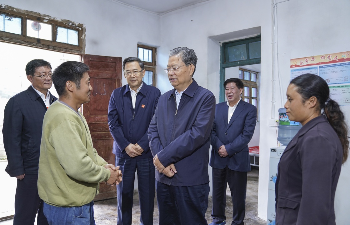 9月13日至16日,中共中央政治局常委、中央纪委书记赵乐际到贵州调研。这是9月14日,赵乐际来到毕节市威宁县格书村,走访慰问贫困户。新华社记者 张领 摄