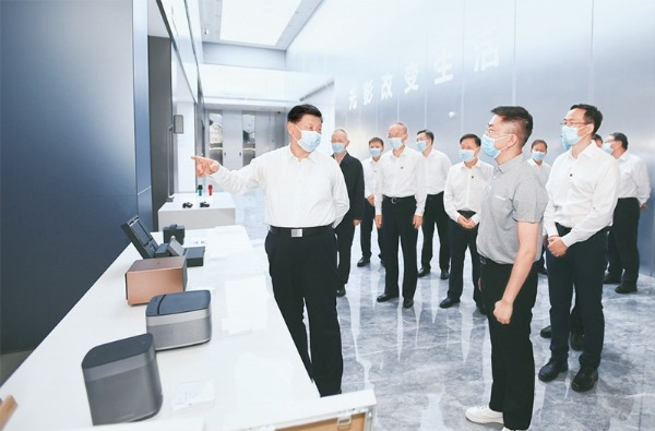 2022年6月8日,中共中央总书记、国家主席、中央军委主席习近平在四川考察。这是8日下午,习近平在宜宾市极米光电有限公司考察,了解企业自主创新和产品研发销售情况。 新华社记者 谢环驰/摄