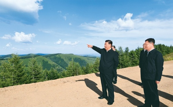 2021年8月23日至24日,中共中央总书记、国家主席、中央军委主席习近平在河北省承德市考察。这是23日下午,习近平在塞罕坝机械林场月亮山考察。 新华社记者 谢环驰/摄