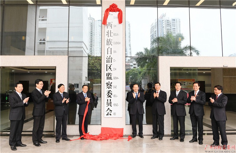 2月2日上午,广西壮族自治区监察委员会正式挂牌成立。自治区党委书记、自治区人大常委会主任彭清华,自治区党委副书记、自治区主席陈武共同揭牌。